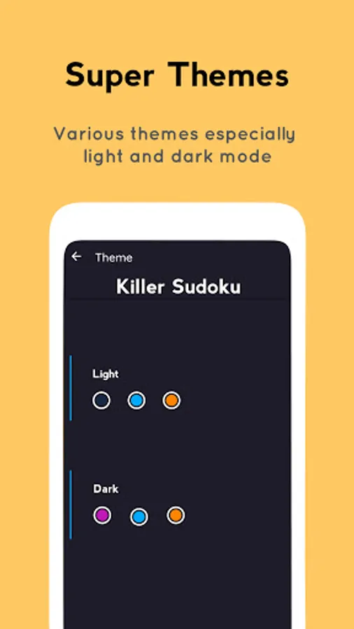 • Different Killer Sudoku color themes.