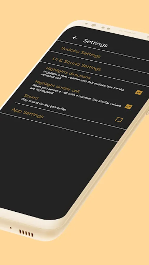 • Sudoku Settings for sound on/off.