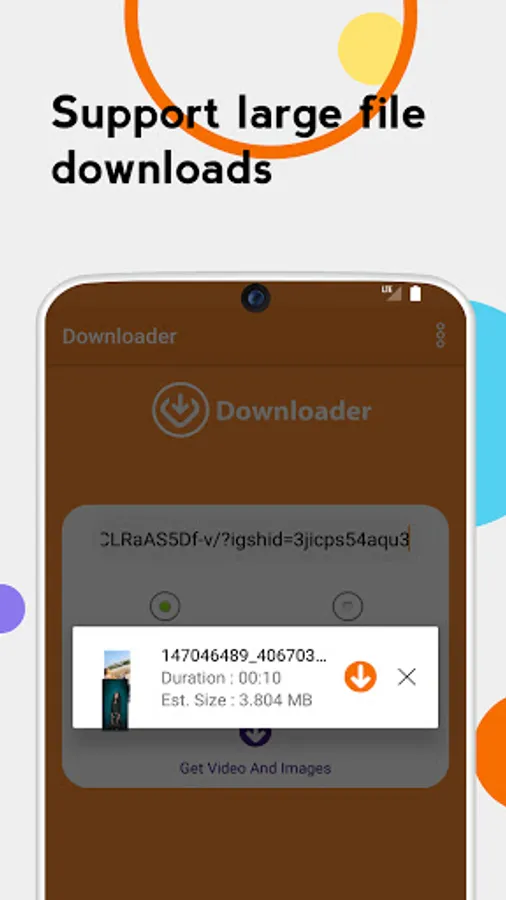 * Easily download videos directly from the Social media to your device. All formats are supported. The downloader automatically detects the video, which you can download with just one click.