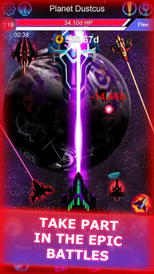 PARTICIPATE IN EPIC SHIP BATTLES: Collect a battle fleet of famous ships and huge flagships to starfleet command. Click as faster as you can in the tap game and get your dream spaceship! Collect dark energy and exchange it for useful artifacts from spase merchants. Buy new weapons and upgrade them.