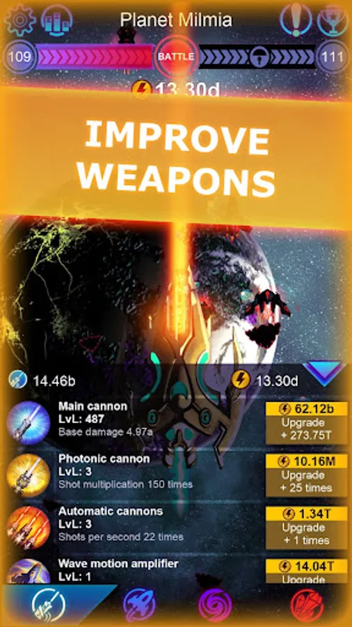 Captain, space invaders are comming! Come in the Idle universe full of space wars! Upgrade your spaceship, tap in the alien shooter and conquer the universe in your space flight! Now you are in one of the most exciting idle space games that you have ever played! Tap as quickly as possible – that is all you need to do in Galaxy Clicker Idle space flight simulator!