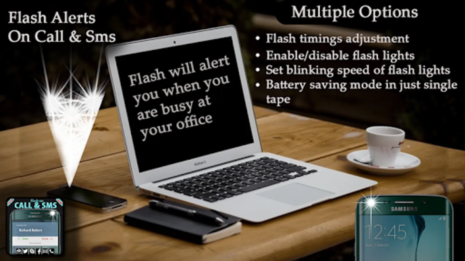LED Flash alert,Flash Notifications,Flash on call forces your Android phone's powerful LED to blink when a call is incoming, when you get a new message, or when a notification pops up.