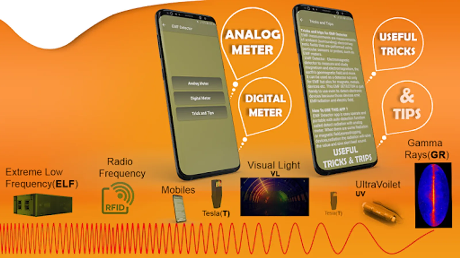 The EMF Radiation Detector - Magnetic Field Detector uses android phone's sensor called magnetometer to detect Electromagnetic waves around you.