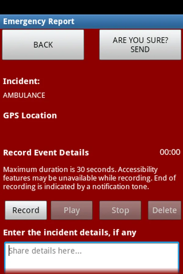 Additional information about the incident detail and location detail can be added in the message. This information will assist emergency agencies to send the required help fast and accurate. SaveME 999 for the blind will provide distinctive benefits for Malaysians with visually-impaired or blind by providing nationwide coverage catering all types of emergencies.