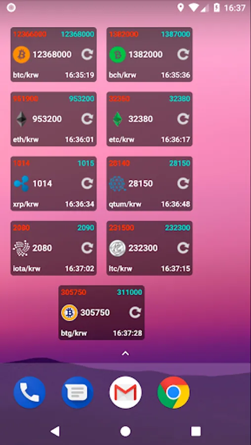 · Monitoring quickly the rate of currency in Coinone with widgets