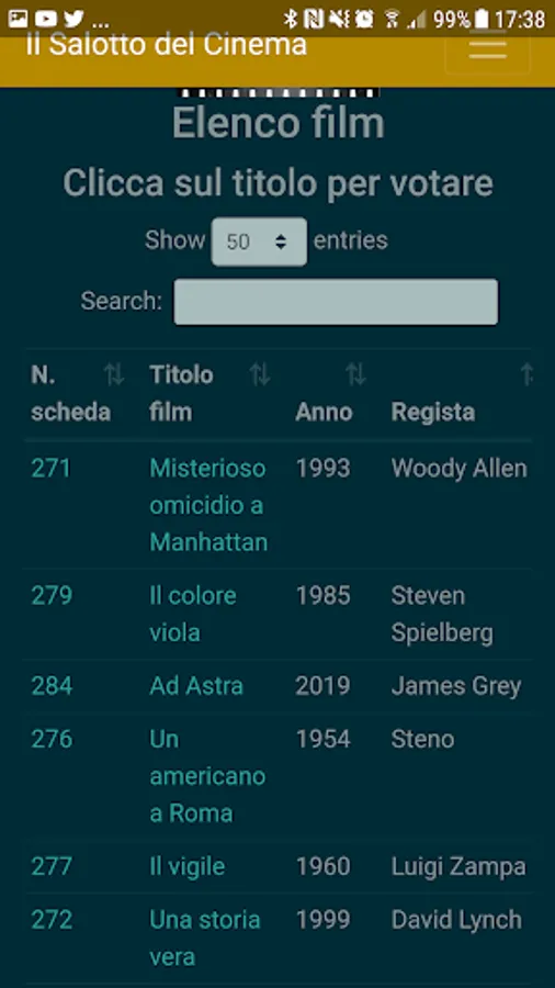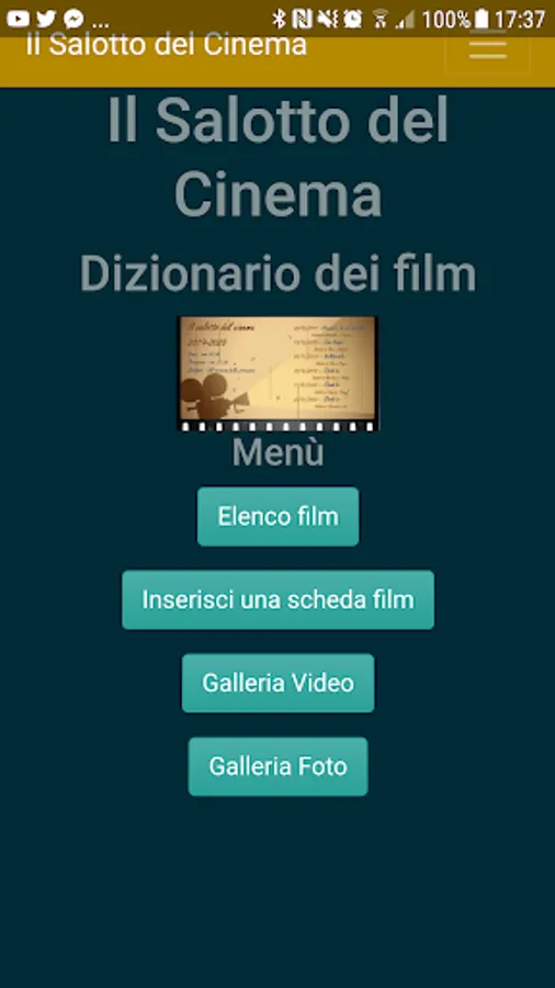 The Dictionary contains hundreds of films with the authoritative reviews of the Salotto del Cinema group and simple fans and spectators, and a synthetic 1 to 5 star rating. Each sheet contains all the information on the film, trailer and poster and users can leave their rating and comments.