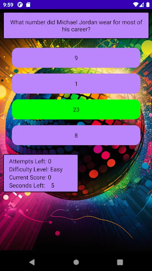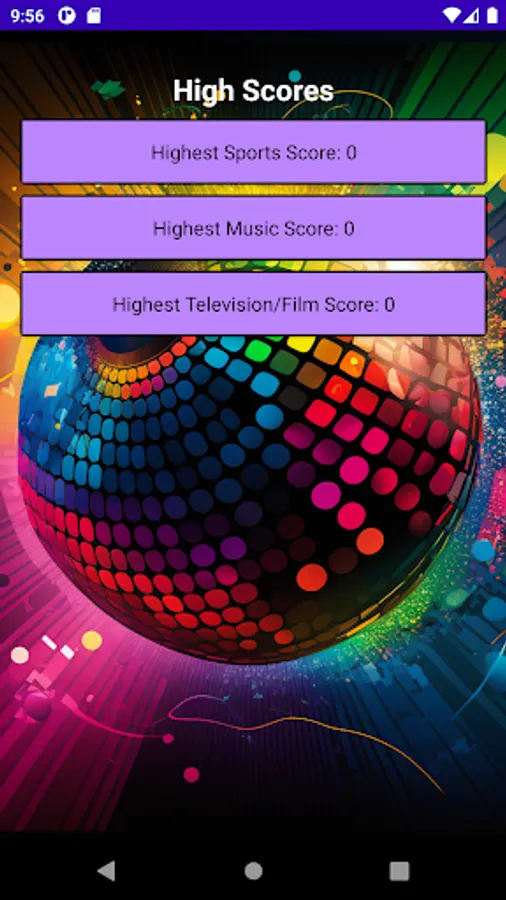 Trivia game that covers 3 topics; music, television/film, & sports. Track your highest scores.
