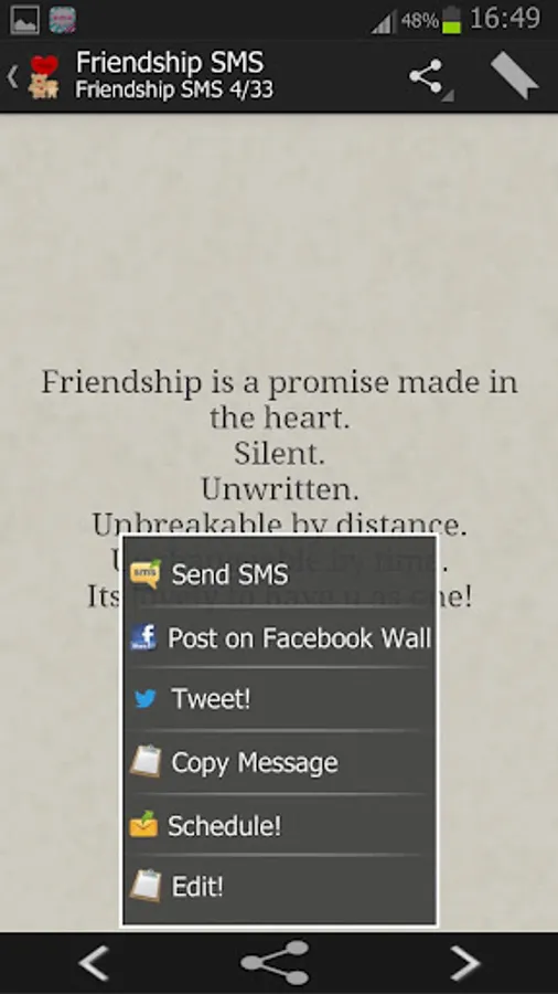 ☆ Option to copy message and share it in any social application.