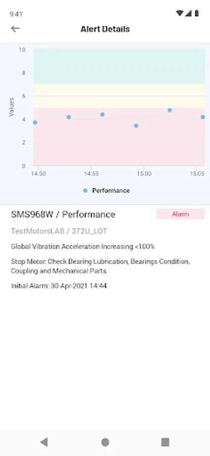 • View plots and charts captured by the SMS, including Vibration RMS, Time Waveform and FFT