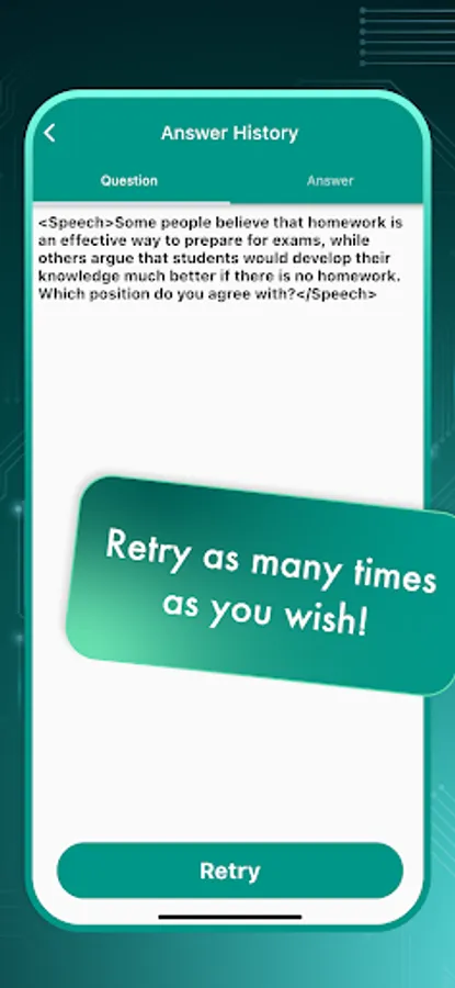 Also, your answer will be converted into text. The generated questions and your answers to them are stored inside App. You can retry the exercises as many as you want until you are satisfied with your answer.