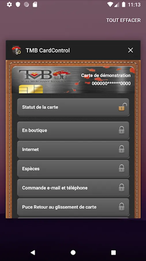 Gives the opportunity to the customer to define himself, in real time, the parameters of use of his cards below the initial limits of the Bank.