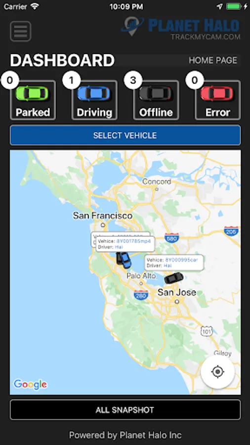Manage your camera and your fleet remotely through Planet Halo's TrackMyCam app. Remote accessibility gives you greater visibility, resulting in a more efficient way to manage your vehicles.