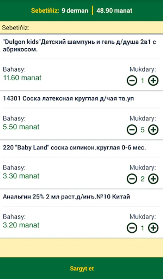 - Dermanhanadaky bar bolan derman serişdelerini, şol sanda kosmetiki we çagalar üçin niýetlenen harytlary sargamak. Bellik: bu hyzmat ýakyn wagtda işläp başlar.