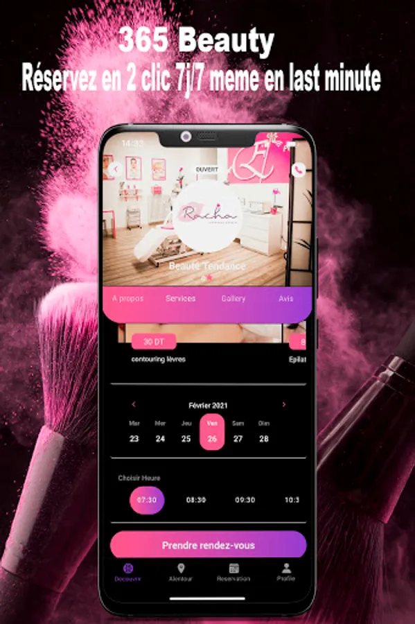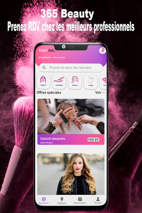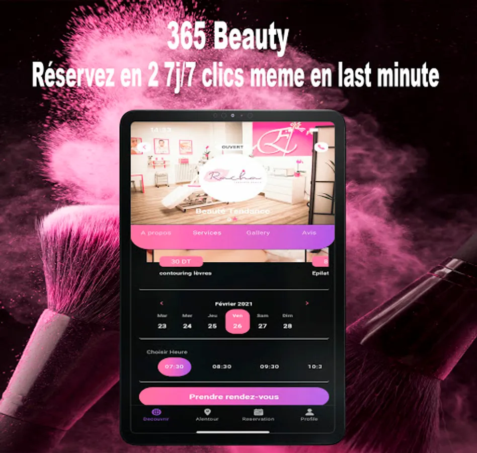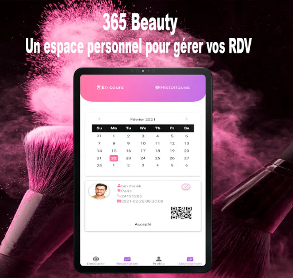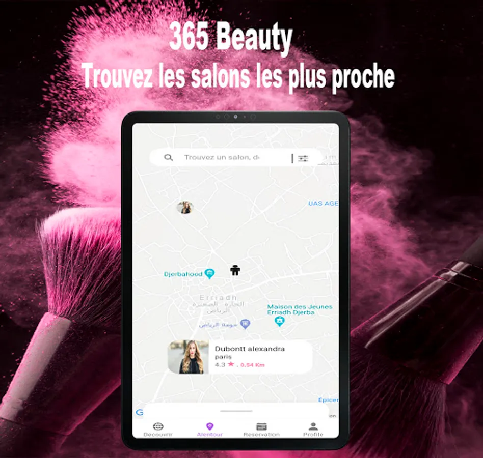 Accessible 24 hours a day, 7 days a week, Beauty 365 accompanies you wherever you are to find a beauty professional nearby: fast, immediate, free.