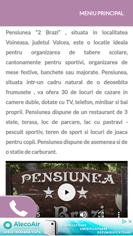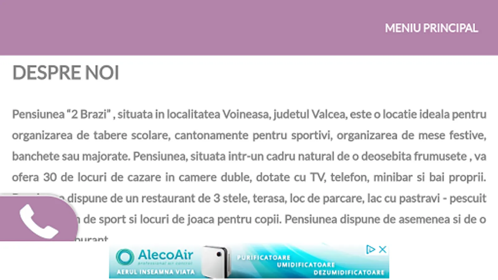 Pension "2 Brazi", located in Voineasa, Valcea County, is an ideal location for organizing school camps, sports halls, organizing festive dinners, banquets or stadiums. The guesthouse, situated in a natural setting of exceptional beauty, offers you 30 places in double rooms, equipped with TV, telephone, minibar and bathrooms. The pension has a 3-star restaurant, terrace, parking space, trout lake - sport fishing, sports ground and playgrounds for children. The pension also has a fuel station.
