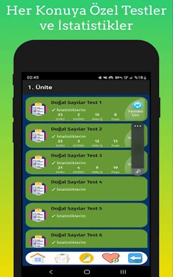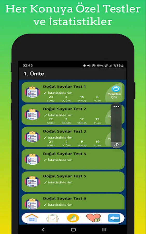 ✿ The Tests unit and subject matter are prepared separately. After you solve the tests, you can see your statistics about the tests. In this way, you can do extra work by seeing the lessons and topics that you are weak.