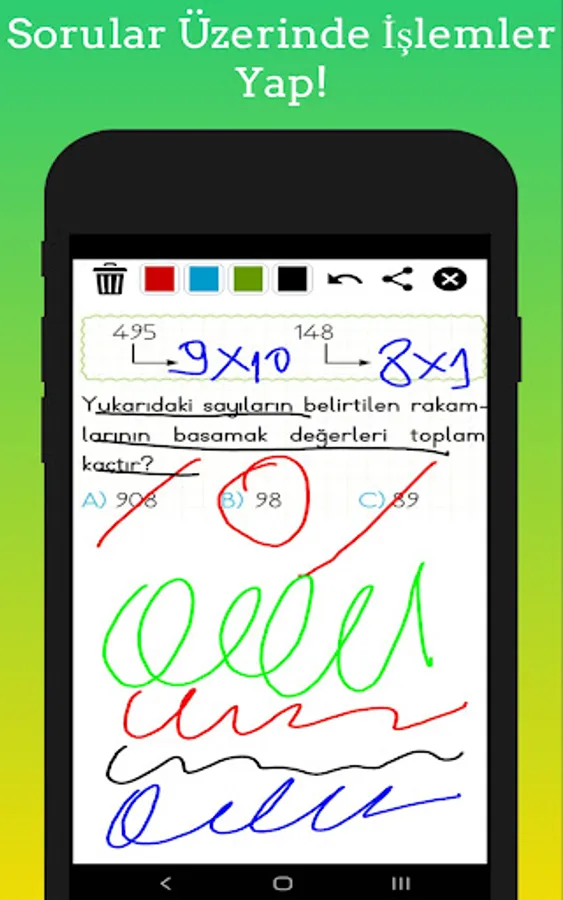 ✿ You can perform operations on the question by clicking the "pen" icon on the Test Solve screen. In addition, when you finish the test, you can learn the correct and incorrect numbers of the test, the score you received and the time it took to complete the test on the result screen.