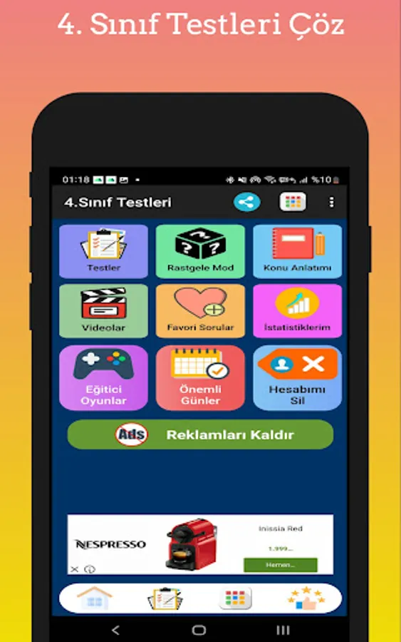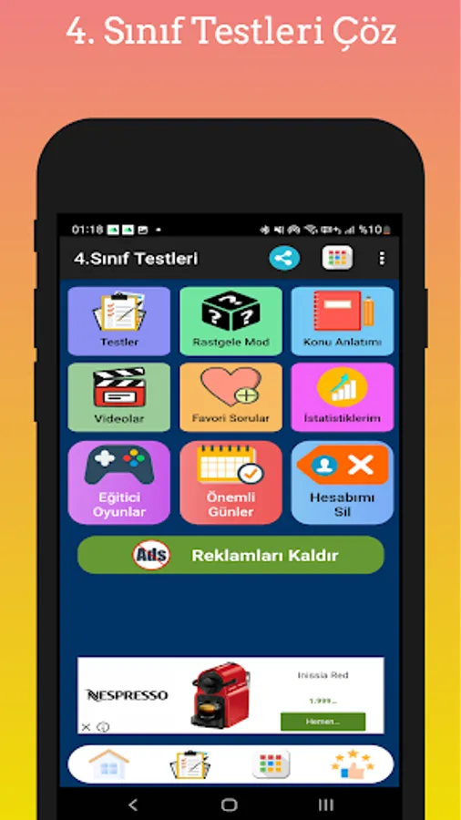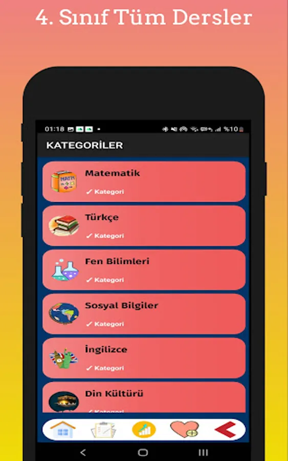 ✿ 4. In our online test solving application that we prepared for class students, 4. Classroom Mathematics, Turkish, Science, Social Studies, English and Religious Culture courses include online tests, lecture notes and learning videos.