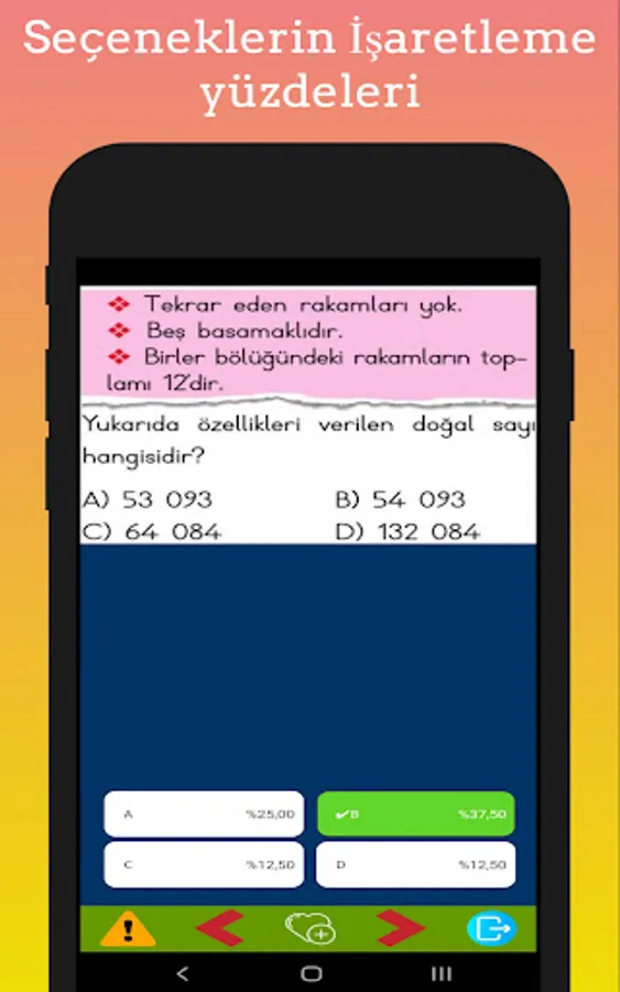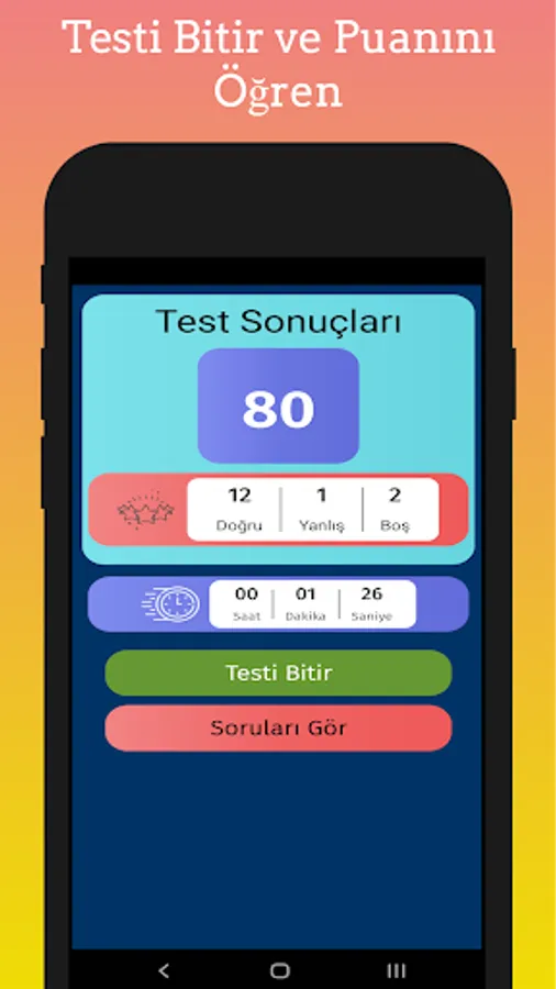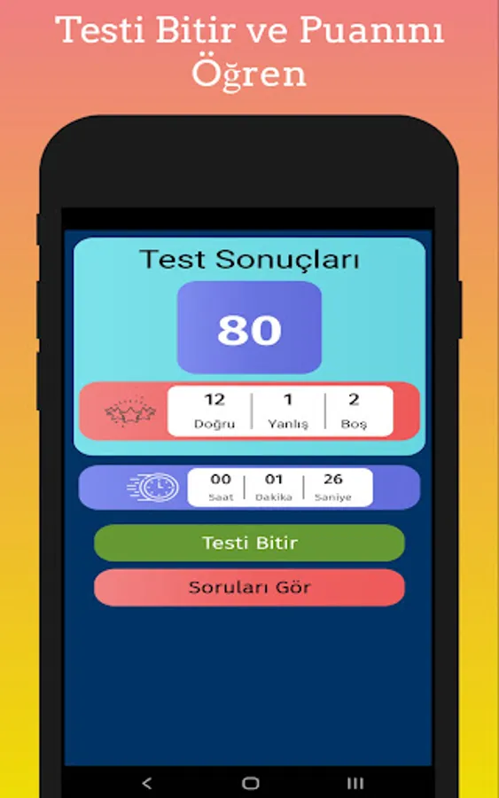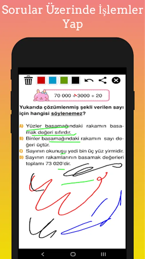 ✿ You can perform operations on the question by clicking the "pen" icon on the Test Solve screen. In addition, when you finish the test, you can learn the correct and incorrect numbers of the test, the score you received and the time it took to complete the test on the result screen.