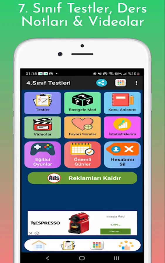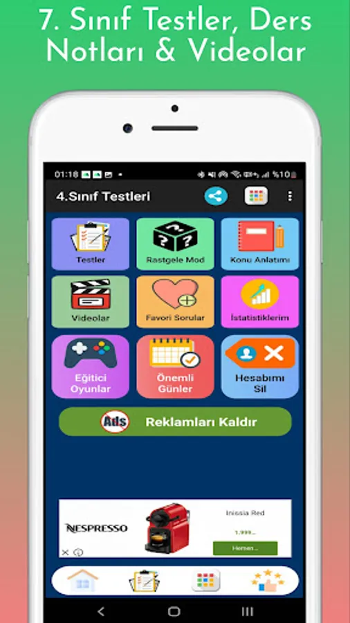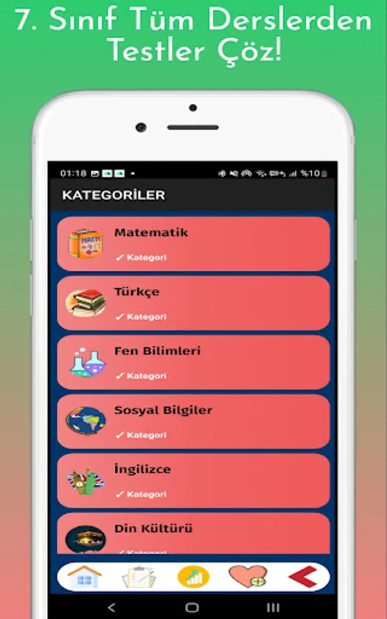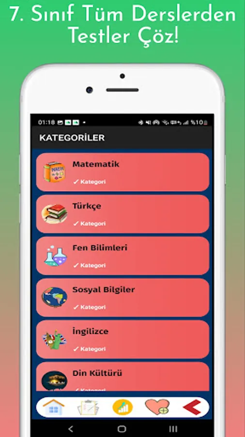 ✿ 7. In our online test-solving application that we prepared for class students, 7. Classroom Mathematics, Turkish, Science, Social Studies, English and Religious Culture courses include online tests, lecture notes and learning videos.