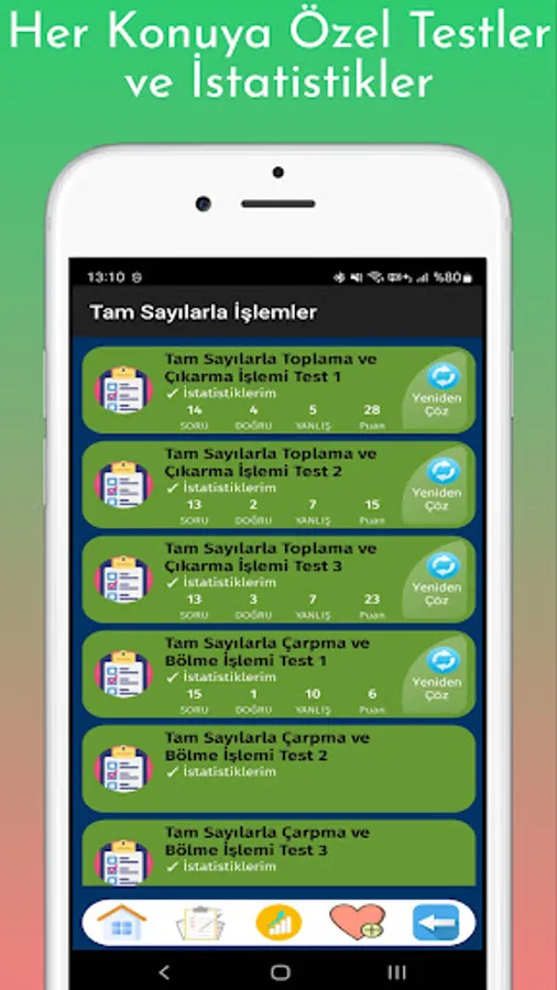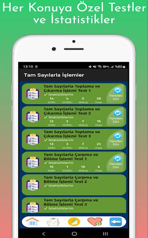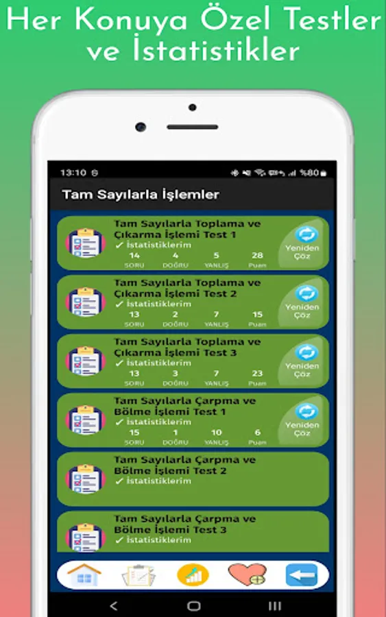 ✿ The Tests unit and subject matter are prepared separately. After you solve the tests, you can see your statistics about the tests. In this way, you can do extra work by seeing the lessons and topics that you are weak.