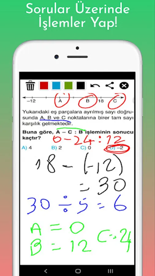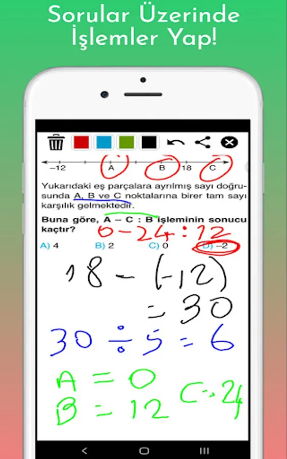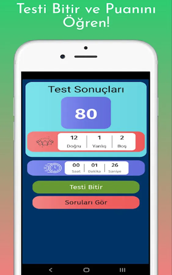 ✿ You can perform operations on the question by clicking the "pen" icon on the Test Solve screen. In addition, when you finish the test, you can learn the correct and incorrect numbers of the test, the score you received and the time it took to complete the test on the result screen.