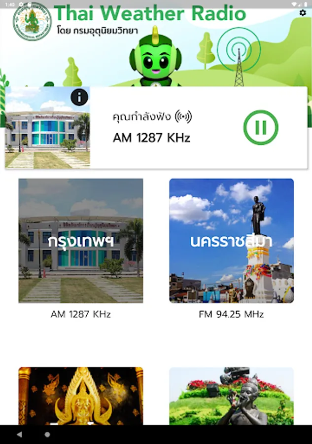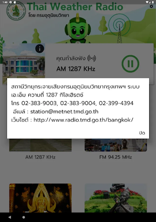 Listen to music, news and weather throughout Thailand. With crystal clear voice quality at all stations. Do not miss any of the action.