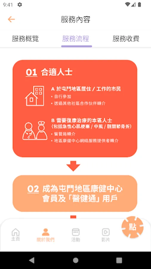 The main center of Tuen Mun District Health Center covers an area of about 17,000 square feet. It has a multi-professional team, including nurses, physiotherapists, occupational therapists, nutritionists, pharmacists, fitness coaches, social workers, etc., to provide you with personalized health services, and Based on the concept of medical life, starting from preventive medicine and cooperating with intelligent equipment training, it helps residents in the district to activate a new attitude towards healthy life and plan a SMART healthy life. Eligible persons can register as members for free and enjoy various health services as needed.