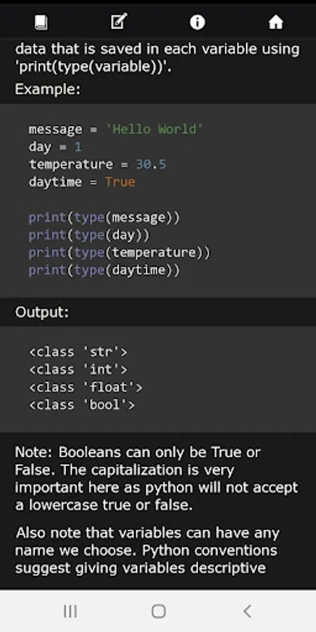 - Light weight app with bite sized Python lessons and activities