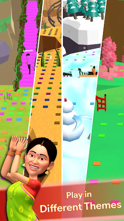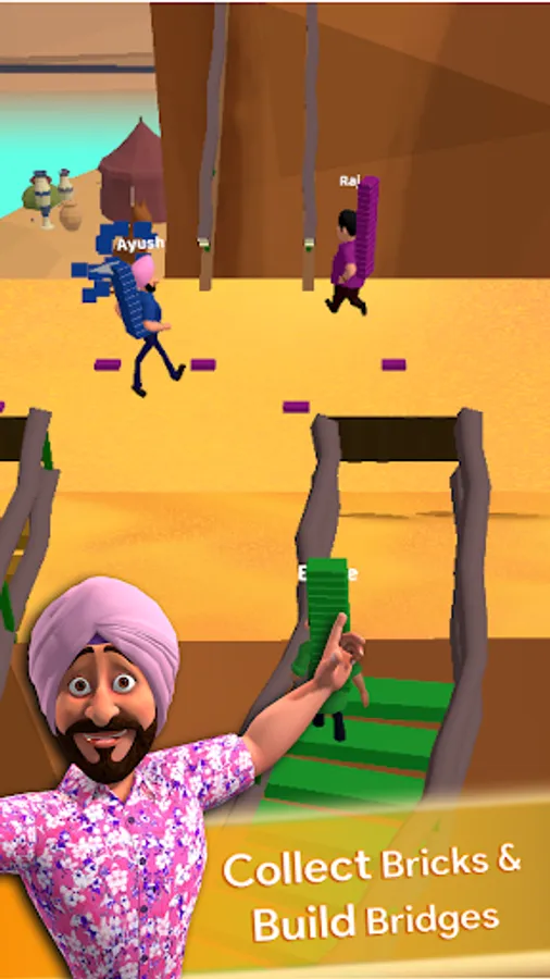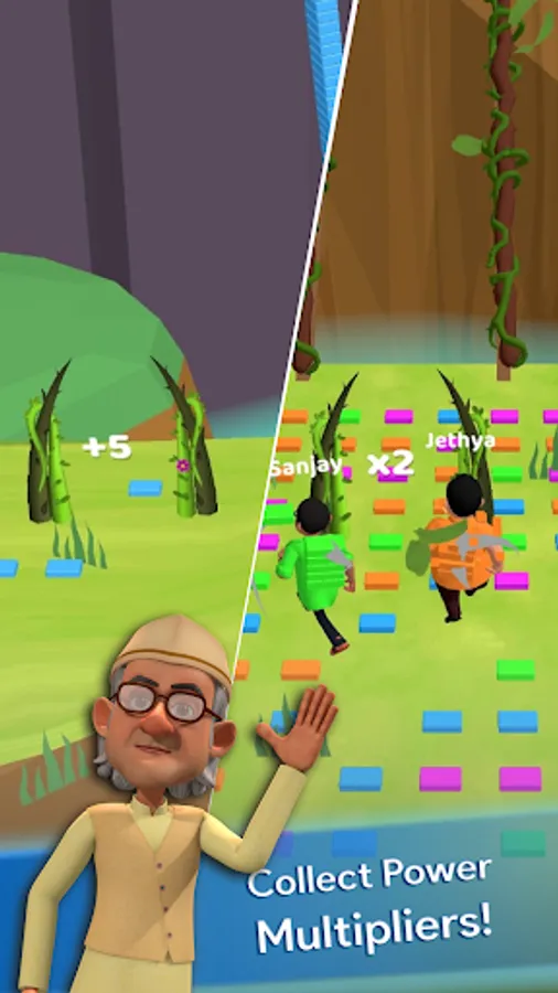 Run Jetha Run is an exciting race amongst the characters from the popular TV show Taarak Mehta ka Ooltah Chashmah(TMKOC) universe where the players can control their TMKOC characters from Gokuldham society to reach the top by collecting power ups and avoiding obstacles and also by knocking down other TMKOC players all while collecting the bricks and racing to the top!