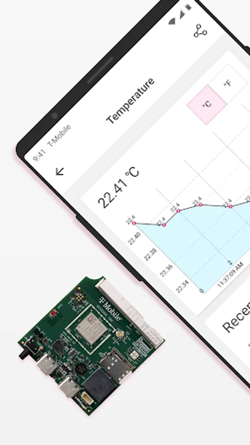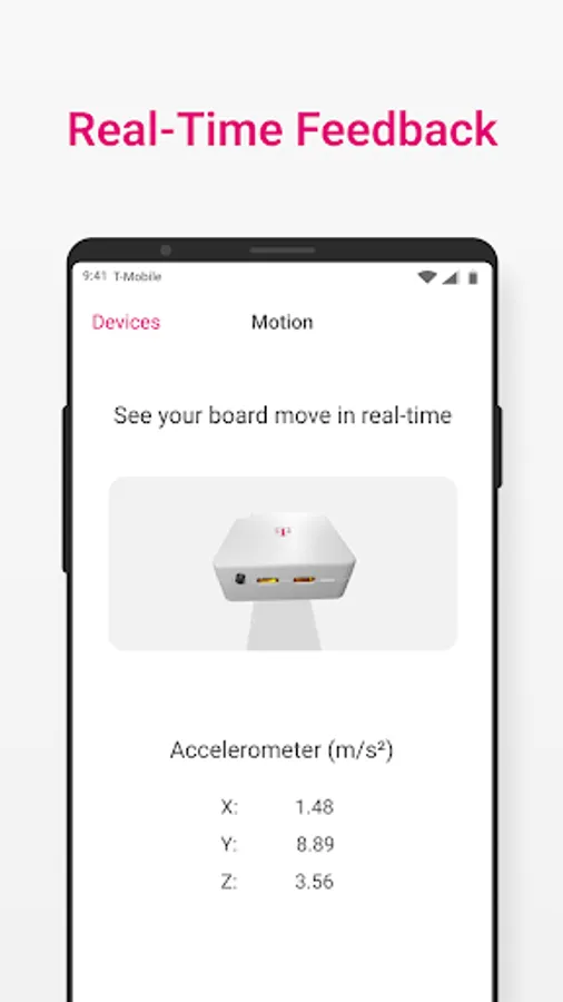 Track the performance of your IoT Developer Kit with this companion app. Once downloaded, you will be able to connect to your device via Bluetooth and check its power status, temperature, pressure, and see how strong your connection is to T-Mobile’s cellular service. You can also toggle the buzzer and LEDs, see accelerometer readings in real-time, confirm the Global Navigation Satellite System is working and view the device on a map, and much more.