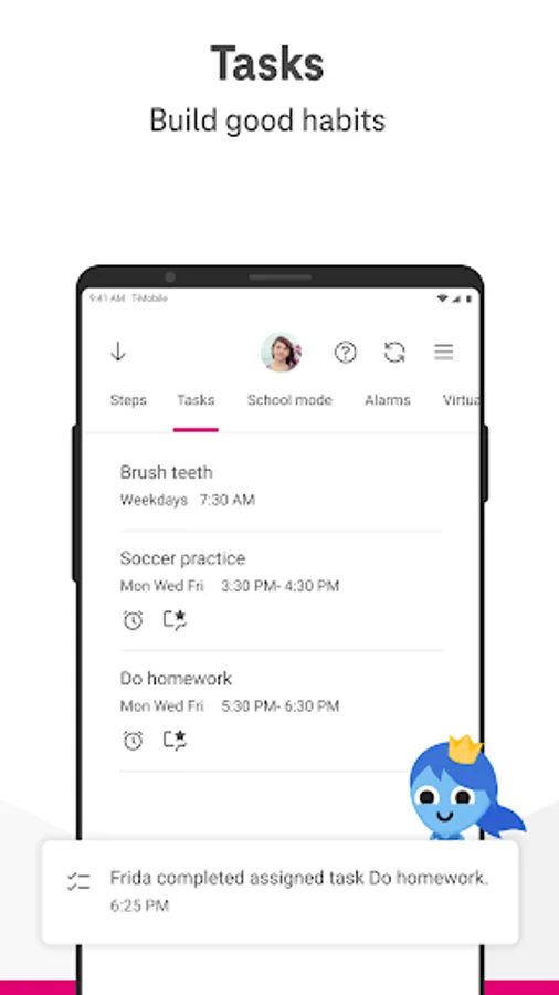 • Keep kids on track with tasks, reminders and rewards, plus alarm, timer, and stopwatch