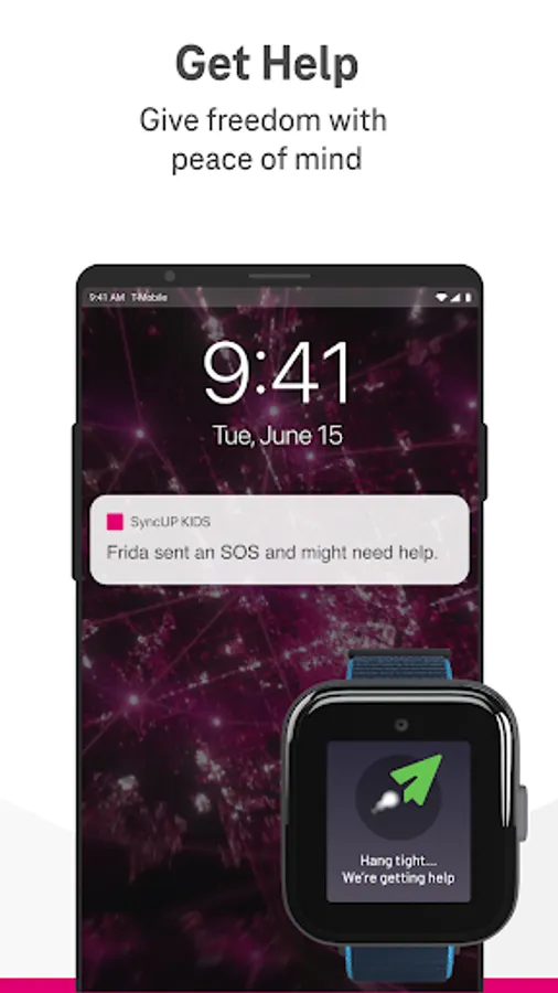 • Have comfort knowing that your child can alert their designated emergency contacts with the touch of the Help button, or reach 911