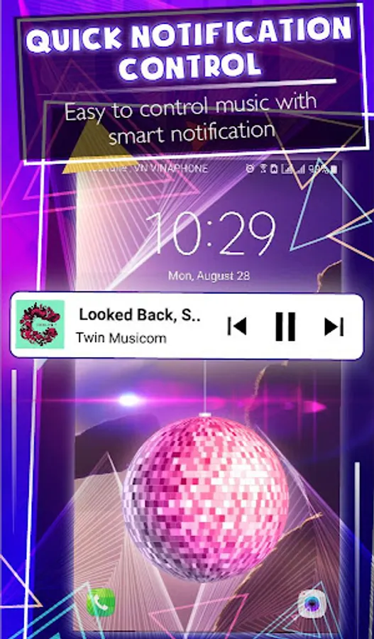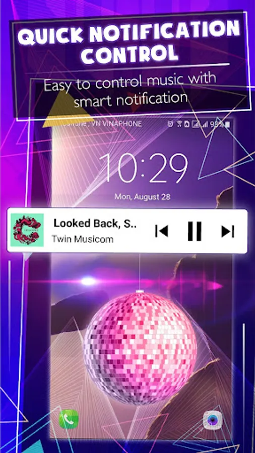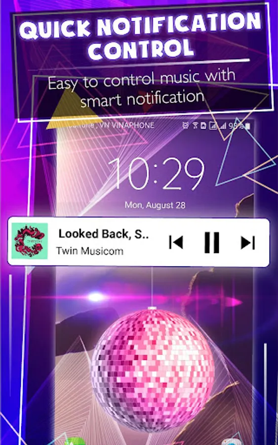 ☞ Notification STATUS support: display album artwork, title and artist, play/pause, skip forward and stop CONTROLS in notification status.
