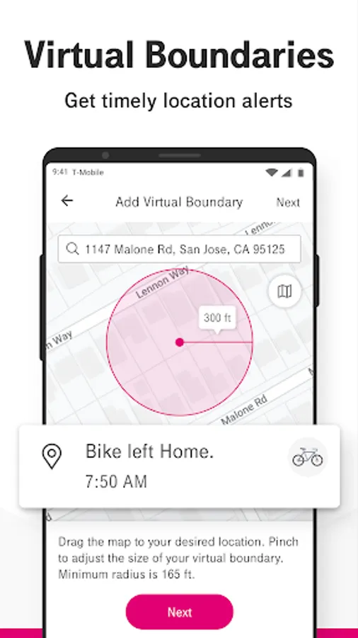 Virtual Boundaries: Set virtual geofenced boundaries to get notified when it leaves the selected area so you can quickly react
