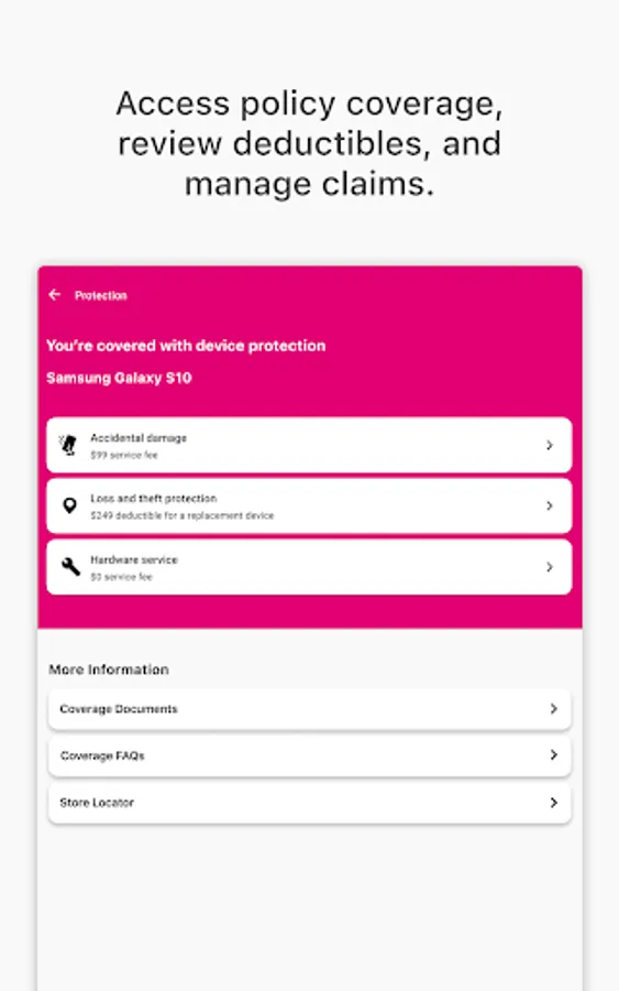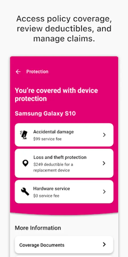 • File a Claim – With just a few taps, you can file an accidental damage claim for drops, spills or cracks, or a (Hardware Service) mechanical breakdown claim for device malfunctions.