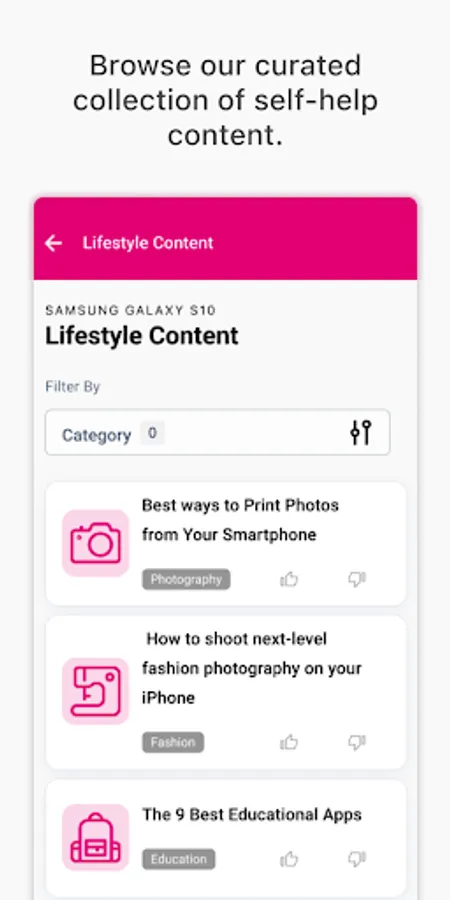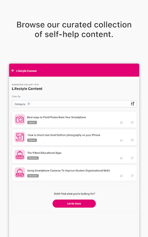 • Browse Curated Self-Help Articles – Get the most out of your devices and discover helpful Step-by-Step Guides.