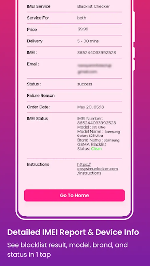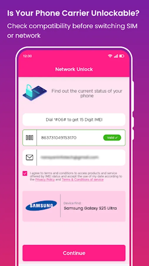 🔍 Not sure if your T-Mobile device is eligible for unlocking? Our app includes an IMEI check feature specifically for T-Mobile phones, which determines whether your device can be unlocked and recommends the best unlocking option for you.