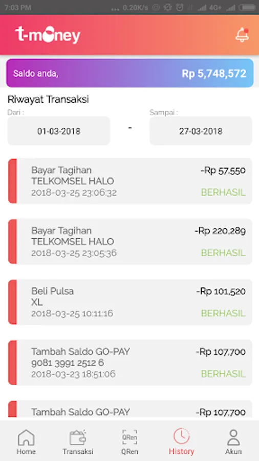 T-money is a service of electronic money (electronic money) from PT. Telkom Indonesia. T-money transactions can be done via the web and mobile applications.