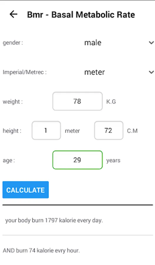 - Basal metabolic rate Calculator (BMR)