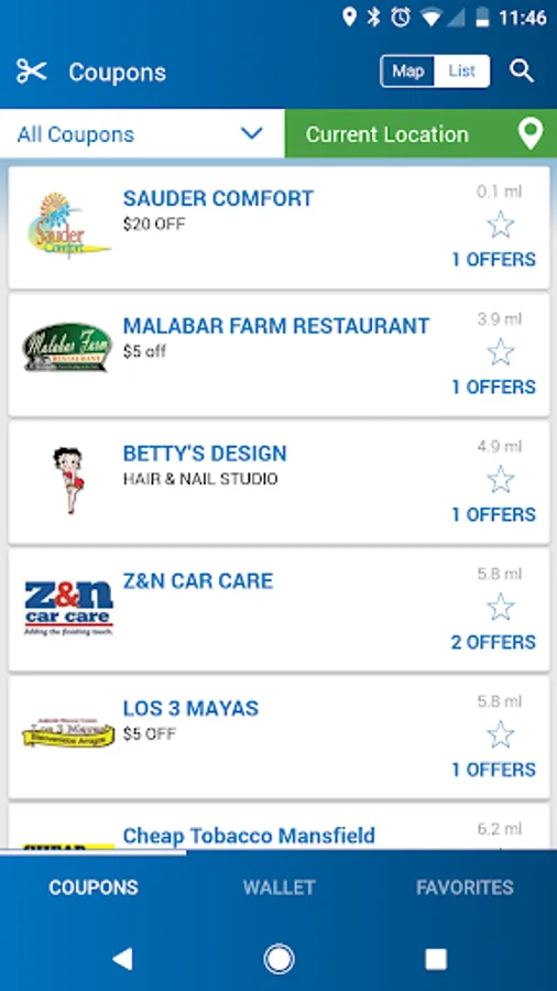 Use your Current Location to find the savings that are surrounding you, within a radius of 15 miles. Or if you are traveling, enter a city or zip code to find local savings on your stops ahead.