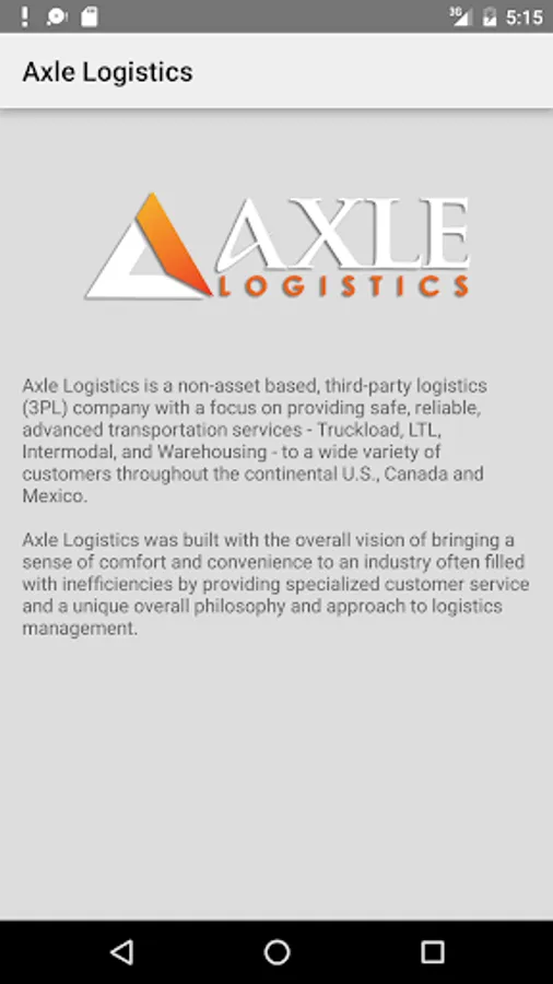Axle Logistics is a non-asset based, third-party logistics (3PL) company with a focus on providing safe, reliable, advanced transportation services - Truckload, LTL, Intermodal, and Warehousing - to a wide variety of customers throughout the continental U.S., Canada and Mexico.