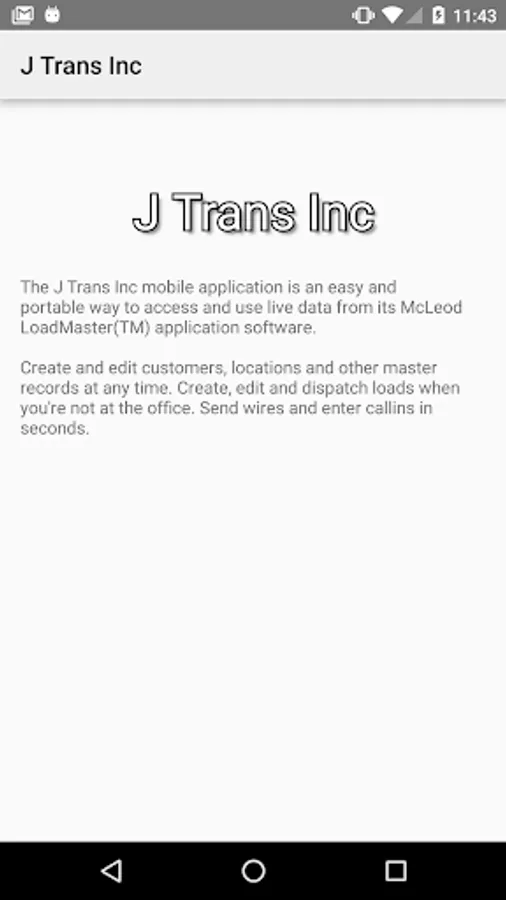 The JTrans Inc. mobile application is an easy and portable way to access and use live data from its McLeod LoadMaster(TM) application software.