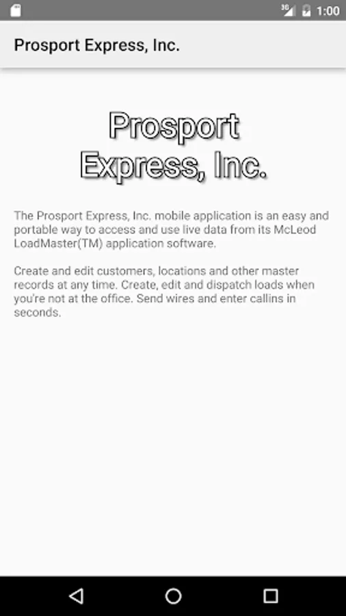 The Prosport Express, Inc. mobile application is an easy and portable way to access and use live data from its McLeod LoadMaster(TM) application software.