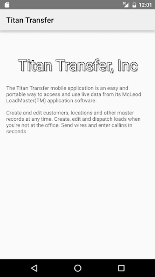 The Titan Transfer mobile application is an easy and portable way to access and use live data from its McLeod LoadMaster(TM) application software.