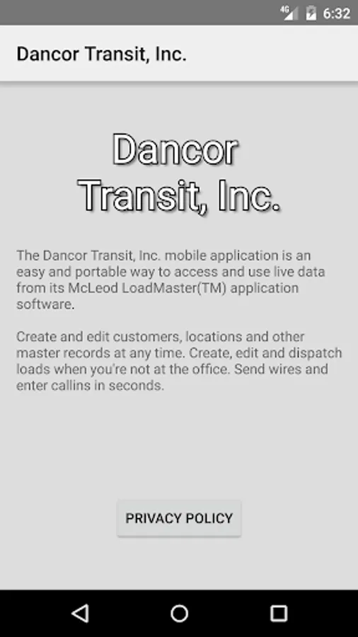 The Dancor Transit, Inc. mobile application is an easy and portable way to access and use live data from its McLeod LoadMaster(TM) application software.