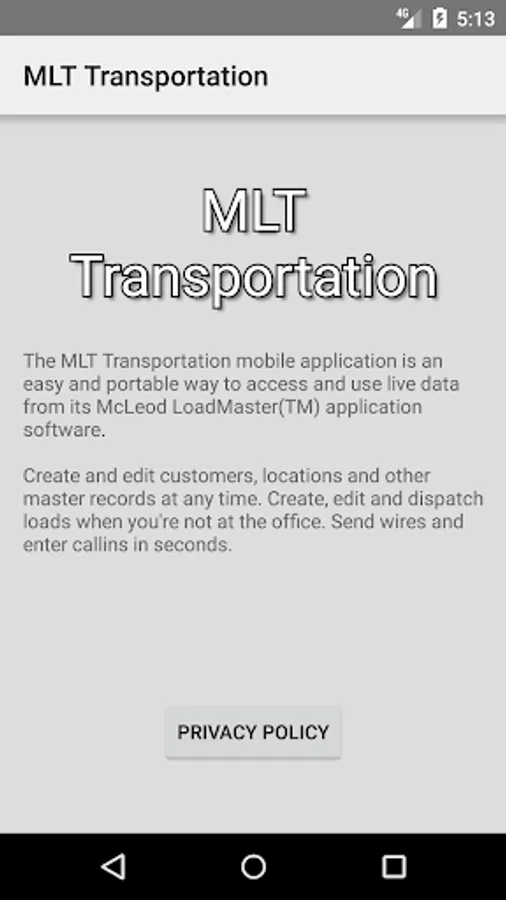 The MLT Transportation mobile application is an easy and portable way to access and use live data from its McLeod LoadMaster(TM) application software.