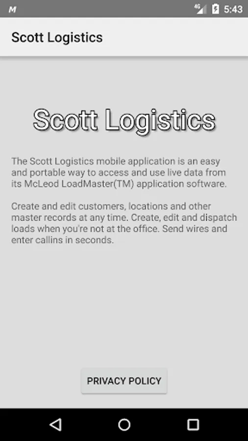 The Scott Logistics mobile application is an easy and portable way to access and use live data from its McLeod LoadMaster(TM) application software.