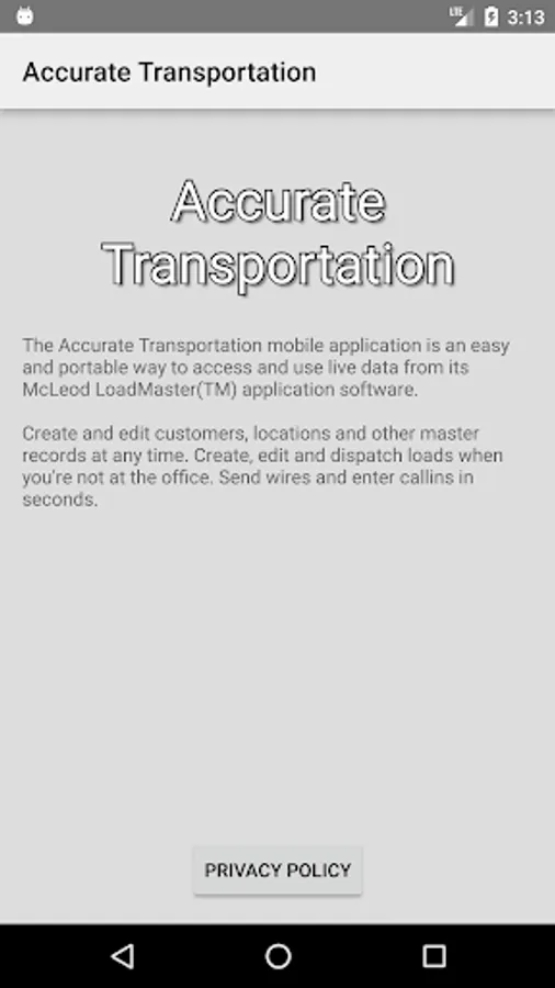 The Accurate Transportation mobile application is an easy and portable way to access and use live data from its McLeod LoadMaster(TM) application software.