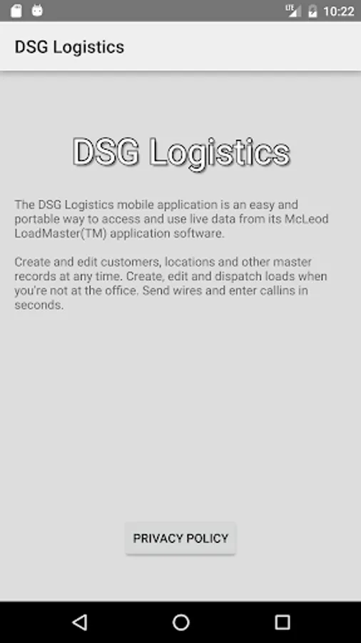 The DSG Logistics mobile application is an easy and portable way to access and use live data from its McLeod LoadMaster(TM) application software.
